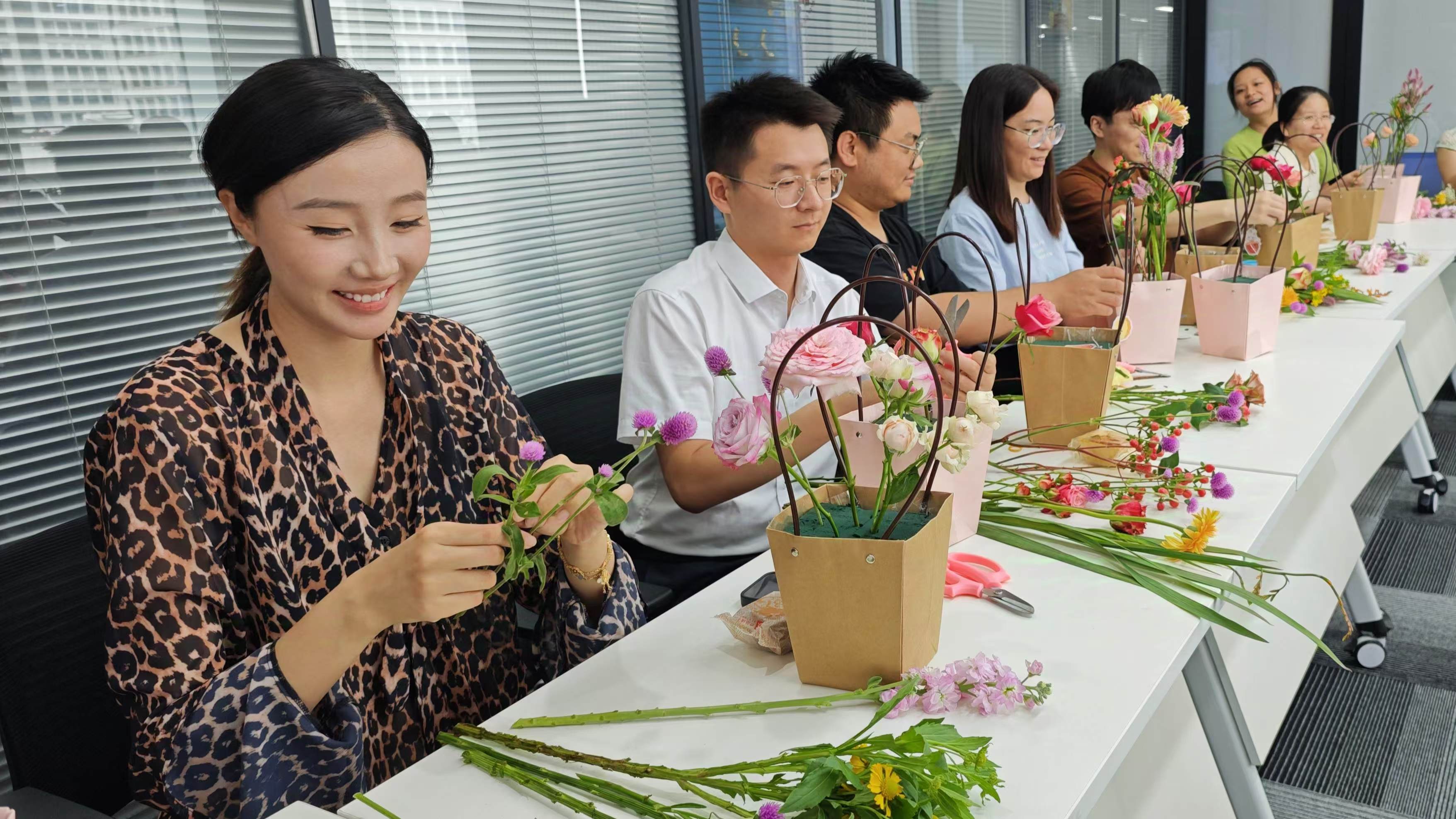 中秋佳节前夕,丽源武汉运营中心举办了一场主题为“月满中秋 花意盎然”的中秋插花活动,旨在通过花艺的力量,传递公司关爱,让大家感受到企业“娘家人”的温暖与节日的欢乐。