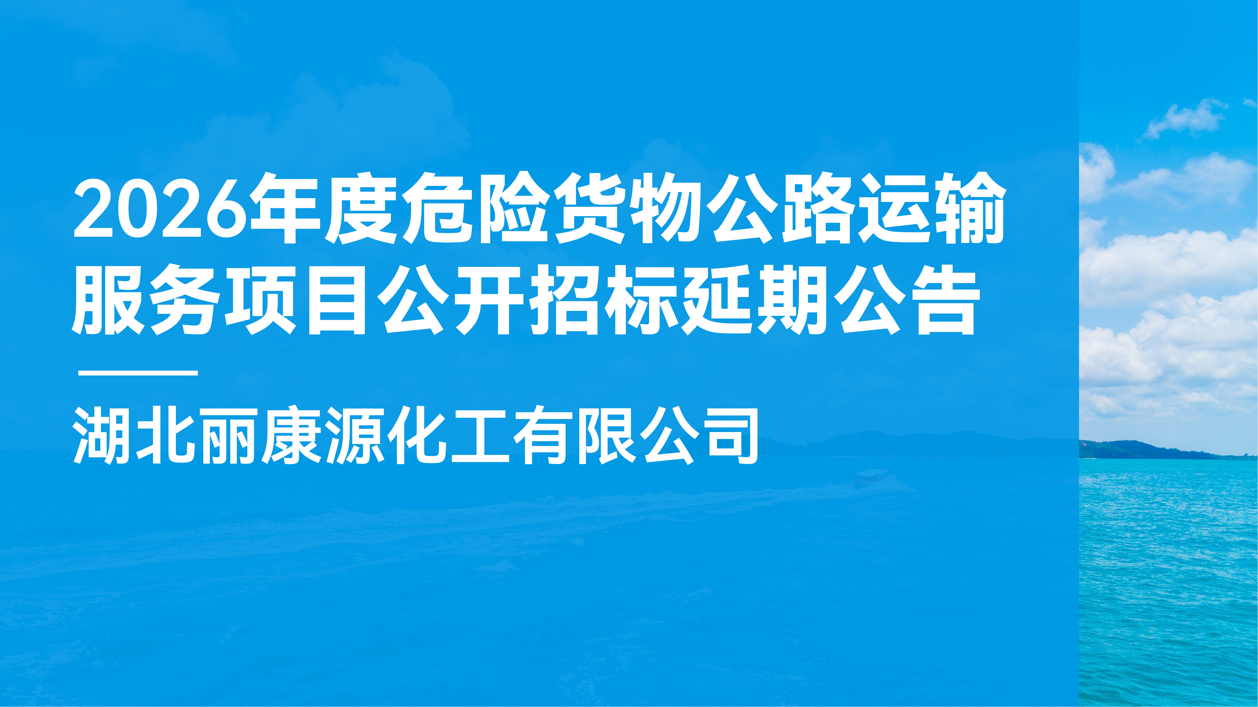 各潜在投标人: 经研究决定,现将“湖北丽康源环保科技有限公司2026年度危险货物公路运输服务项目”(招标编号:LKYHB-2025001)的投标截止时间延期,具体安排如下: 一、延期事项 原定于2025年12月18日14:00的投标截止时间,现延期至2025年12月19日14:00。 二、其他事项说明 除上述投标截止时间变更外,原招标公告中关于项目概况、招标范围、资格条件、采购文件获取方式、投标文件递交方式及联系方式等所有其他事项均保持不变。 三、联系方式 采购单位:湖北丽康源环保科技有限公司 ...